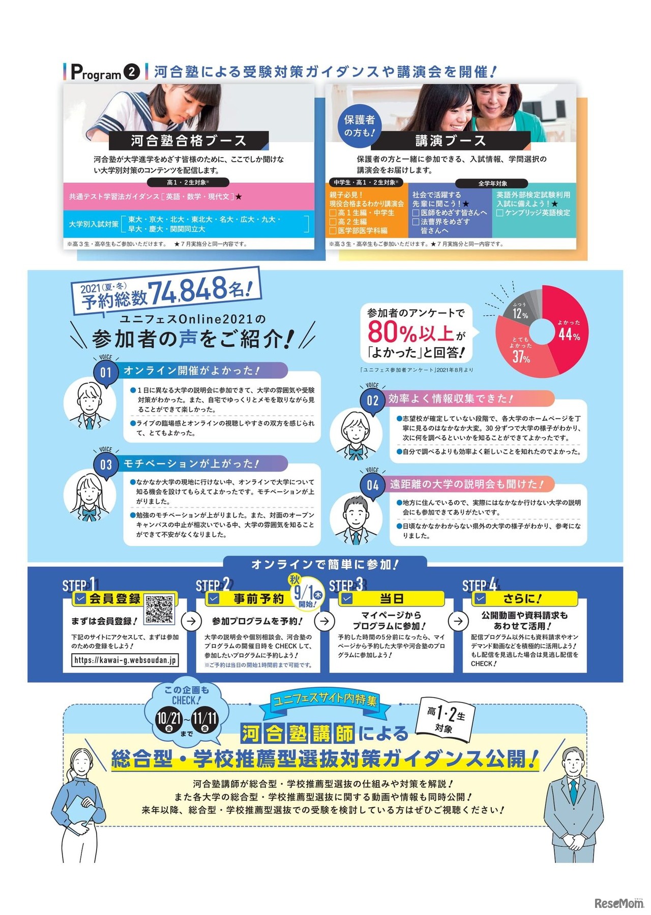 河合塾は2022年11月12・13日、大学合同説明会「ユニフェスOnline秋」をオンラインで開催する。国公立・私立120大学が参加する。参加費無料。事前予約制。