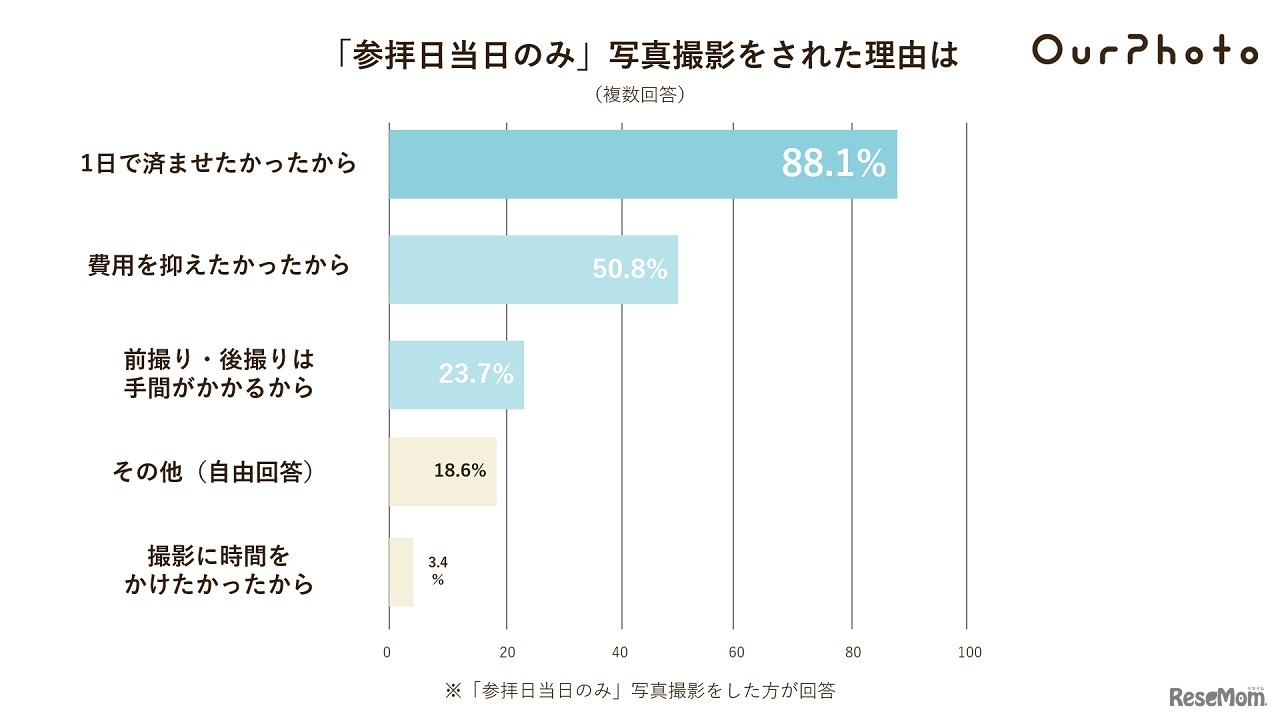 七五三行事においてもっとも重視するものは「写真」71.8%で、写真撮影の実施日は、70.2%の人が「参拝当日のみ」と回答していることが、OurPhotoが2022年9月5日に発表した調査結果より明らかになった。