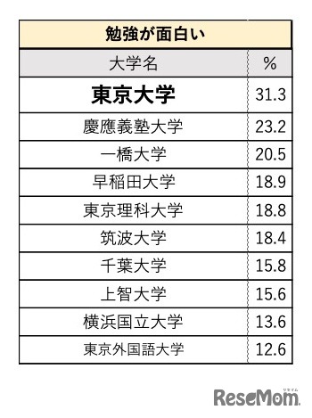 「勉強が面白い」大学イメージランキング(関東・甲信越)
