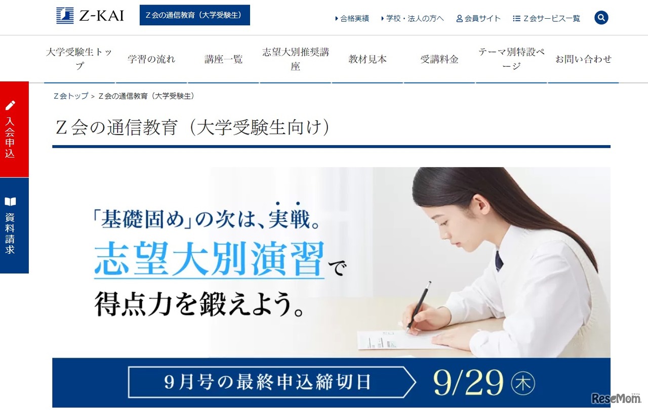 画像出典:Z会 Z会の通信教育(大学受験生)