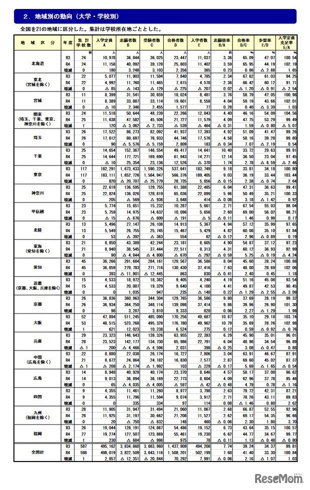 日本私立学校振興・共済事業団は2022年9月9日、2022年度(令和4年度)私立大学・短期大学等入学志願動向を公表した。集計した598校のうち、定員割れの私立大学は、前年度比7校増の284校。大学全体に占める未充足校の割合は、調査開始以降もっとも多い47.5%となった。