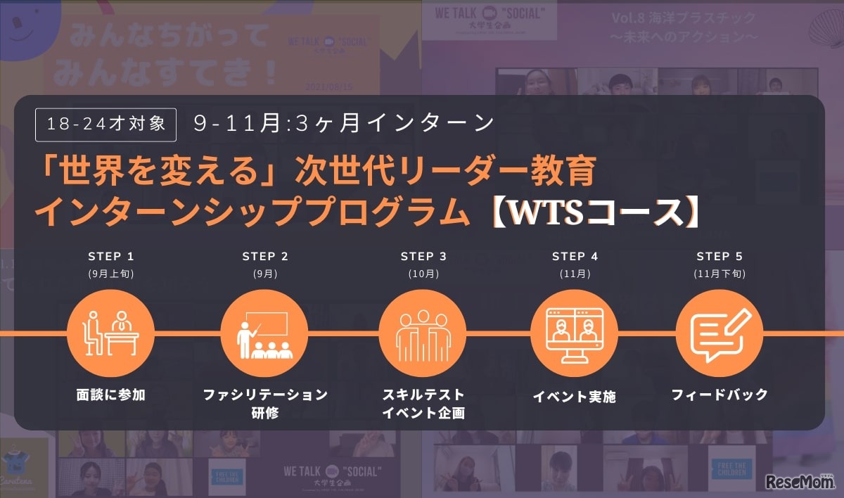 フリー・ザ・チルドレン・ジャパンは、学生を対象にした無料オンライン研修の参加者を募集している。小中高校生向けオンラインキャンプにてファシリテーション担当を担うコースと、社会問題についてプレゼンやディスカッション等を行うイベントの企画運営を目指すコース。