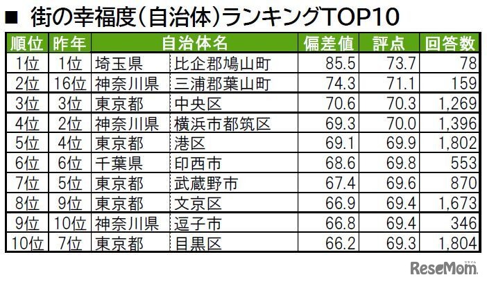 街の幸福度(自治体) ランキングTOP10