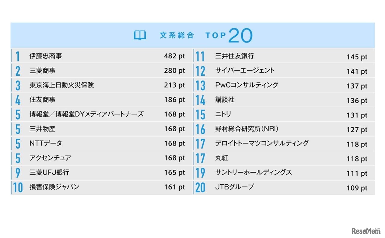 産経新聞社とワークスジャパンは、2024年3月卒業・修了予定の大学生・大学院生を対象に、就職希望先調査を実施。その中間結果を発表した。文系1位「伊藤忠商事」、理系1位「NTTデータ」。