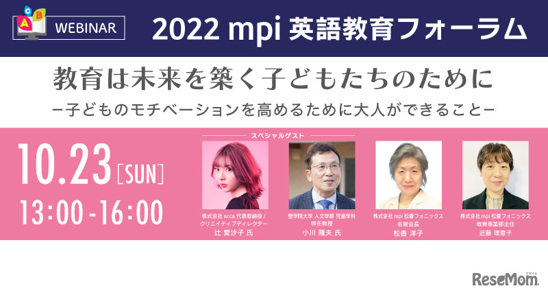 英語教育43年のmpi松香フォニックスは2022年10月23日、英語教育に携わる人や子供に英語を教えたい保護者を対象に、「2022 mpi英語教育フォーラム 教育は未来を築く子どもたちのために」をオンライン開催する。一般参加費3,300円(税込)。