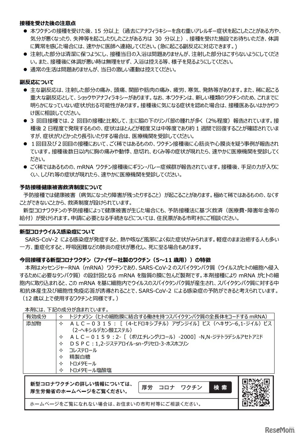 厚労省、コロナワクチン小児接種(3回目)説明書をWeb掲載 2枚目の写真・画像