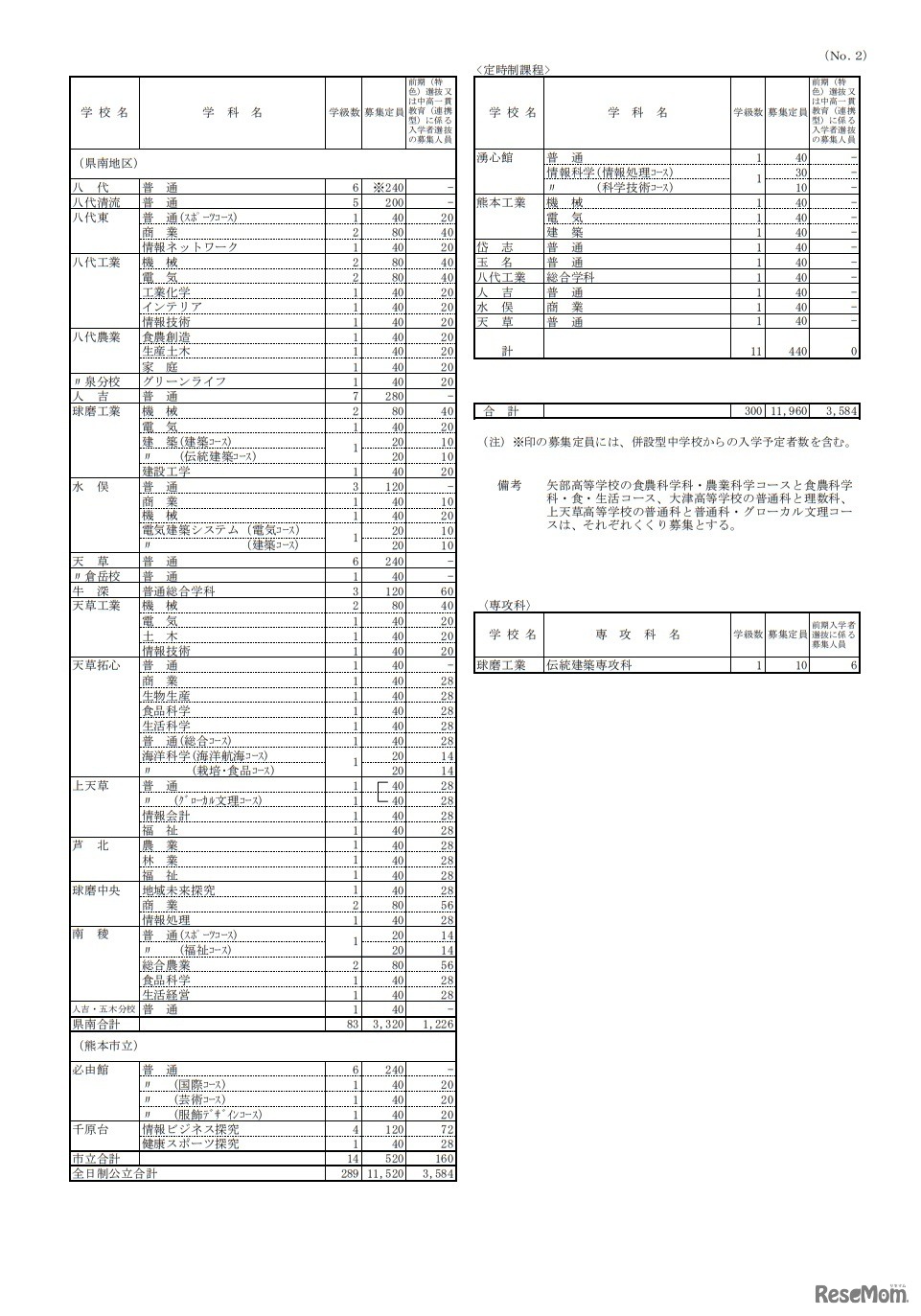【高校受験2023】熊本県立高、学校別募集定員…熊本(普通)400人等 2枚目の写真・画像
