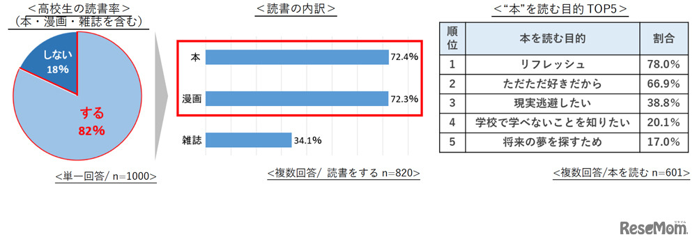 現役高校生の82%は月平均の読書時間が8時間あり、お小遣いの4分の1を書籍購入に使っていることが、リクルートが提供する進路情報メディア「スタディサプリ進路」が発表した調査結果から明らかとなった。