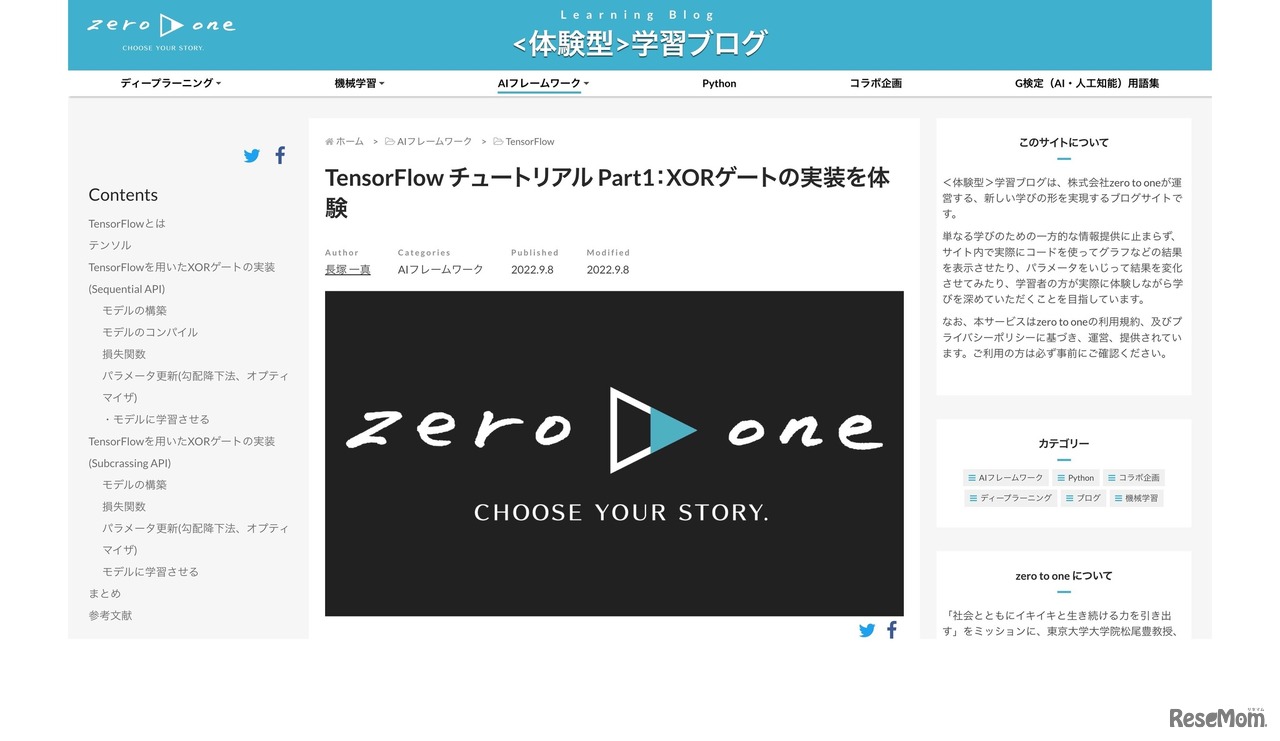 zero to oneは2022年9月9日、人工知能を中心とした用語やテーマについて画面上でコードを実行し、結果を見て、触って、学ぶことができる新しい学習サービス「<体験型>学習ブログ」をリリースした。