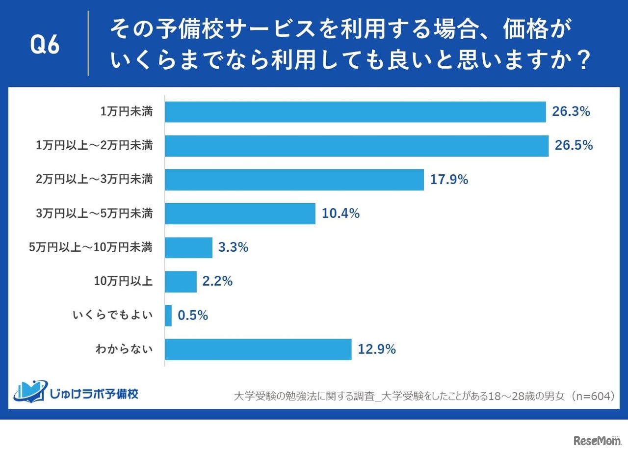 その予備校サービスを利用する場合、価格がいくらまでなら利用しても良いと思いますか?