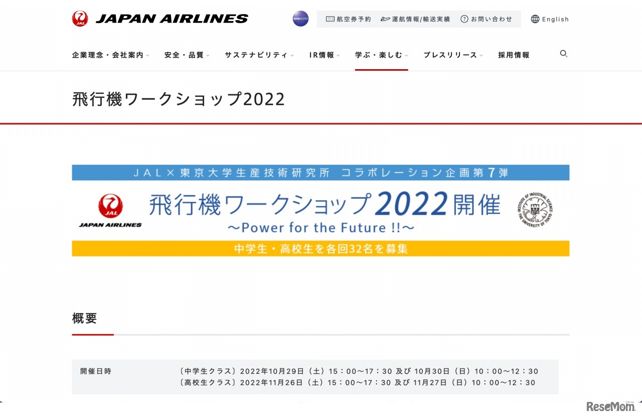東京大学生産技術研究所 次世代育成オフィス(ONG)と日本航空(JAL)は2022年10月・11月、中高生を対象とした「飛行機ワークショップ2022」を開催する。7回目となる今回は、3年ぶりに対面で実施。中学生と高校生に分かれ、それぞれ2日間の講座を実施する。