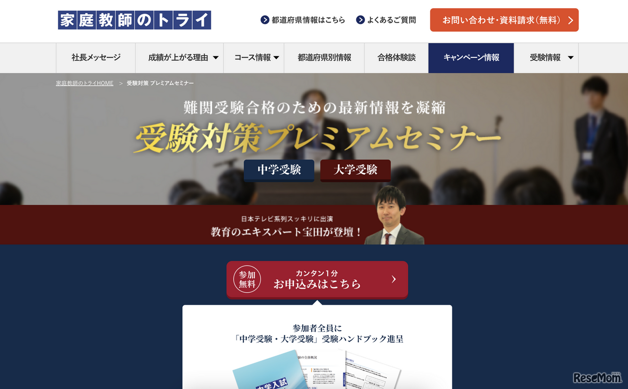 家庭教師のトライが2022年10月、中学受験生・大学受験生およびその保護者を対象にした「受験対策プレミアムセミナー」を東京・名古屋・大阪の3都市にて無料開催する。登壇する同社の教務責任者であり難関受験専任教育プランナーを務める宝田亮祐氏に見どころを聞いた。