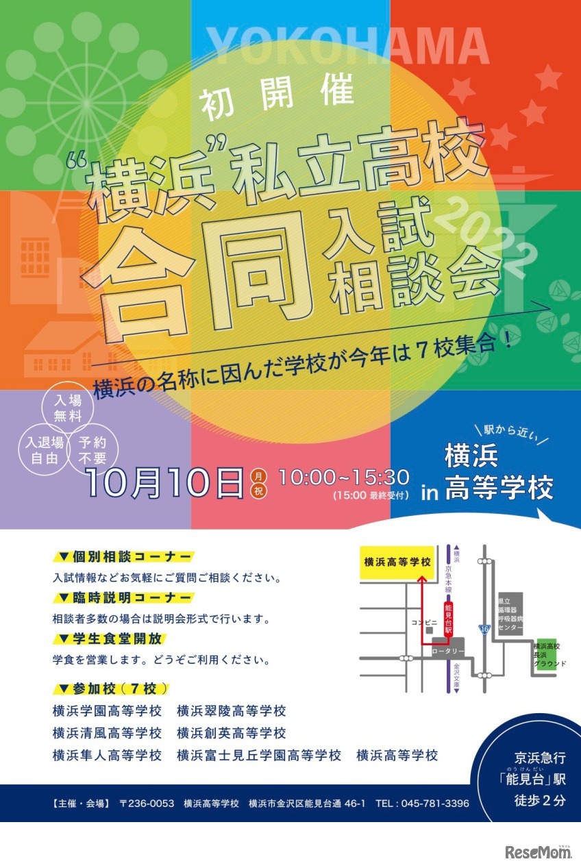 横浜高等学校が主催する進学イベント「“横浜”私立高校合同入試相談会」が、2022年10月10日に初開催される。学校名に「横浜」の名称が入った私立高校7校が参加。予約不要、入場無料、入退場自由。