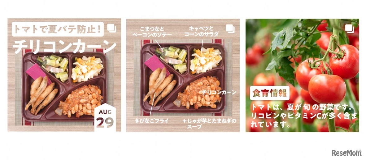 横浜市は2022年8月に、横浜市中学校給食公式Instagram開設した。Instagramを通して中学校給食の献立の紹介、栄養士等による食育動画、食の豆知識等、中学校給食に関するさまざまな魅力を届ける。