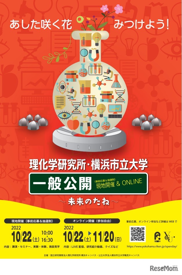 理化学研究所横浜キャンパスと横浜市立大学鶴見キャンパスは、一般公開「あした咲く花 みつけよう!~未来のたね~」を2022年10月22日キャンパス内の現地で、10月22日から11月20日までオンラインで開催する。現地開催は事前応募、抽選制。