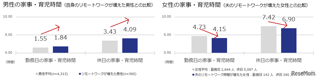 男性の家事・育児時間 / 女性の家事・育児時間