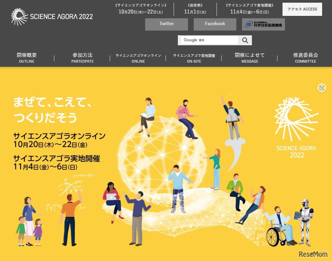 科学技術振興機構(JST)は「サイエンスアゴラ2022」を、2022年10月2日・20日から22日までの間オンラインで開催。11月1日に前夜祭をオンラインで行い、11月4日から6日までをテレコムセンタービル(江東区青海)等で実地開催する。参加費無料、事前登録制。