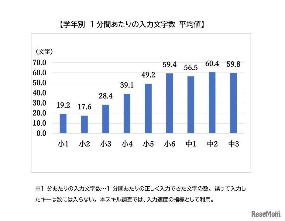 画像出典:教育ネット 学年別 1分間あたりの入力文字数 平均値