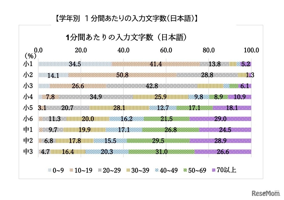 小学5年生がタイピングで1分間あたりに入力する文字数の平均は約49文字で、文部科学省の2015年調査時から約8倍と大幅に増加していることが、教育ネットが実施した「第1回全国統一タイピングスキル調査」結果から明らかになった。