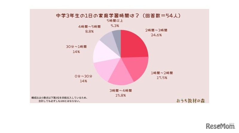 ARINAが運営する幼児、小学生の保護者向け教育メディア「おうち教材の森」は、日本全国の中学生の子供をもつ保護者を対象としたアンケート調査「中学生の1日の家庭学習時間は?」を実施。2022年9月15日に結果を公表した。