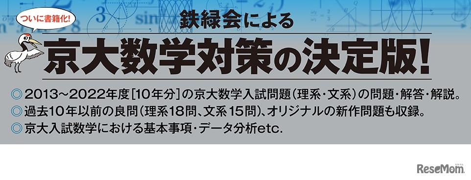 KADOKAWAは2022年9月24日、「2023年度用 鉄緑会京大数学問題集 資料・問題篇/解答篇 2013-2022」(編:鉄緑会大阪校数学科)を発売した。「鉄緑会東大問題集」シリーズに続き、書籍化。定価5,060円(税込)。