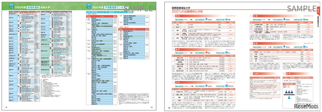 サンプルページ「予想難易度ランキング」「2022年度の傾向と分析」