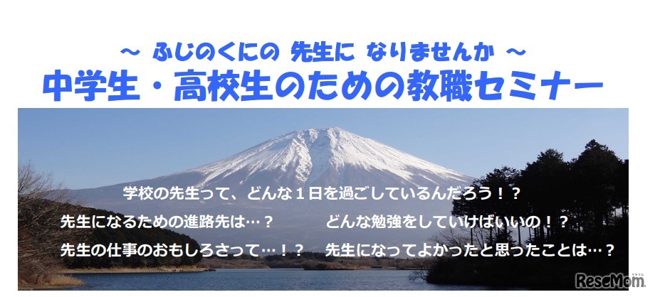 静岡県教育委員会は2022年10月23日、「中学生と高校生のための教職セミナー」を開催する。将来、「先生」になりたい人へ、若手教員や養護教員がやりがい等を紹介する。開催はオンラインと静岡県庁での対面と2方式で行う。
