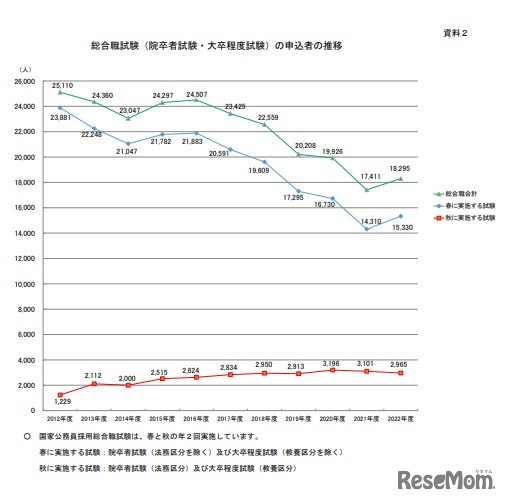 画像出典:人事院 総合試験(院卒者試験・大卒程度試験)の申込者の推移