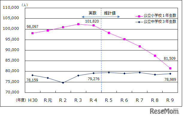 都の教育人口推計、5年後の公立小学生数は減少・中学生数は微増 2枚目の写真・画像