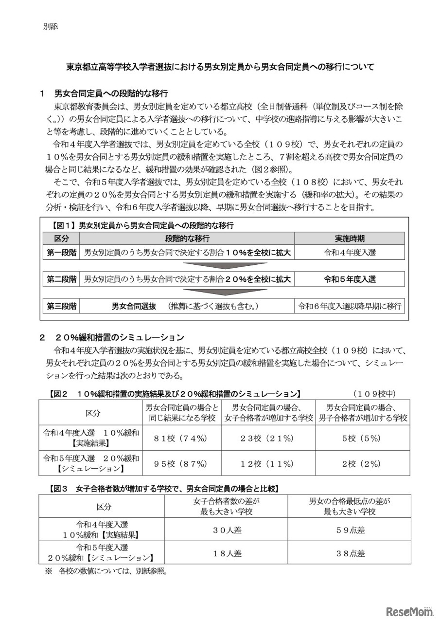 東京都教育庁は2022年9月22日、2023年度東京都立高等学校入学者選抜実施要綱・同細目を公表した。学力検査は2023年2月21日、追検査は3月9日。インターネット出願実施校は、前年度の20校試行から全校に拡大。男女合同定員の割合は20%を全校に拡大する。