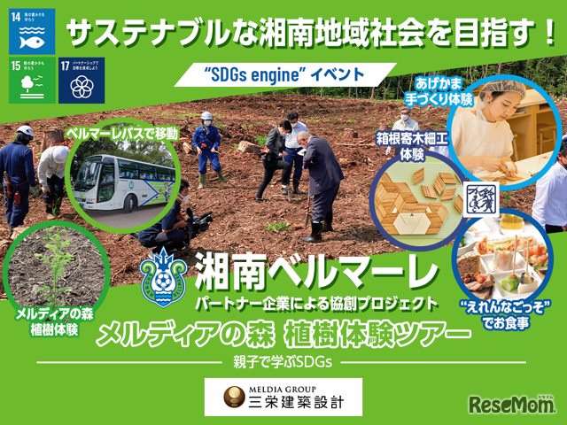三栄建築設計は、箱根と御殿場の山間に位置する「メルディアの森」での植樹と鈴廣かまぼこの里ツアーによる森と海の循環型社会を考える体験型イベントを、小学生とその家族40組を対象に2022年10月23日に開催する。