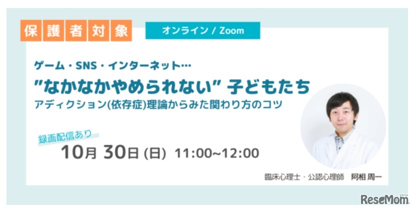 プシケメンタルスクールは2022年10月30日、セミナー「”なかなかやめられない”子どもたち アディクション(依存症)理論からみた関わり方のコツ」をオンラインにて開催する。