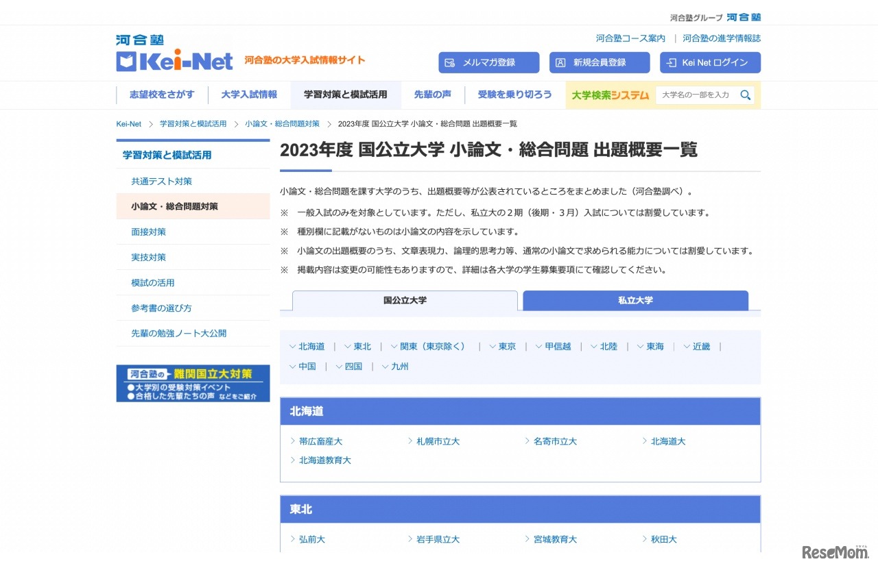 河合塾の大学入試情報サイト「Kei-Net」は2022年9月20日、2023年度入試情報に「英語資格・検定試験利用状況」「小論文・総合問題出題概要一覧」を掲載した。2023年度入試における国公私立各大学の詳細情報を一覧にまとめて紹介している。