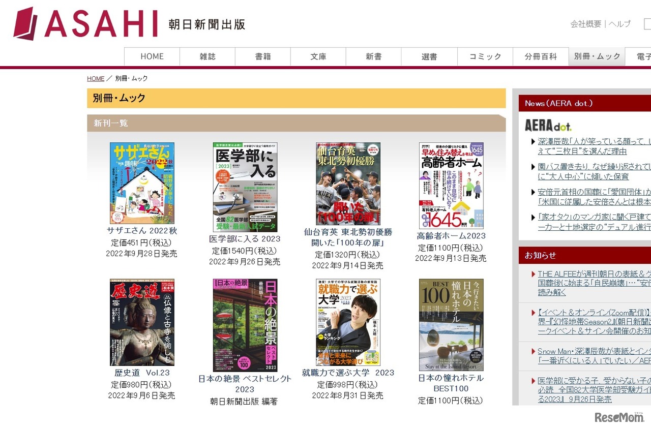 朝日新聞出版は2022年9月26日、週刊朝日ムック「医学部に入る2023」を発売した。2023年度入試に向け、全国82大学医学部の入試情報を網羅し、医学部を目指す受験生だけでなく、医学部を目指している家族がいる人にも意義のある1冊となっている。定価は1,540円(税込)。