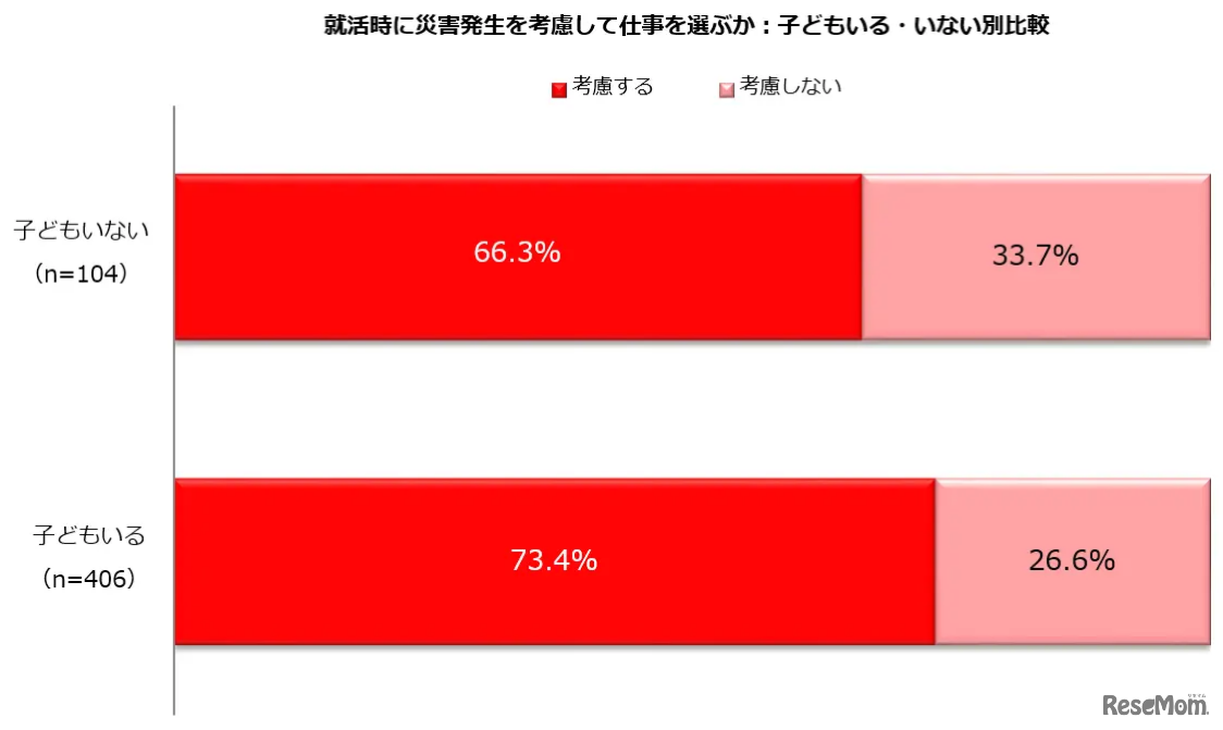 仕事と家庭の両立を希望する主婦・主夫層の実情や本音を探る調査機関「しゅふJOB総研」は、「災害と仕事選び」をテーマに仕事と家庭の両立を希望する主婦・主夫層にアンケート調査を実施し、子供がいる人といない人の傾向について追加分析を行った。