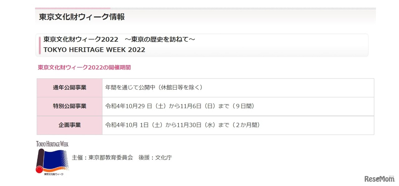 東京都教育委員会は11月3日の文化の日を中心に、都内全域において文化財の公開や文化財に関わるさまざまな企画事業を行う「東京文化財ウィーク」を実施。都民が文化財に触れ、楽しむことのできる貴重な機会を提供する。