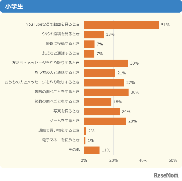 「ケータイやスマホを一番使うのはどんなとき?」小学生