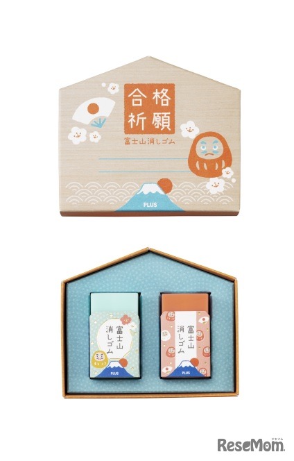 プラスは、「エアイン富士山消しゴム」から、合格祈願をテーマに、メッセージを添えて贈れる絵馬型ボックス入りの限定企画「エアイン富士山消しゴム限定富士絵馬」を2022年10月3日に発売する。