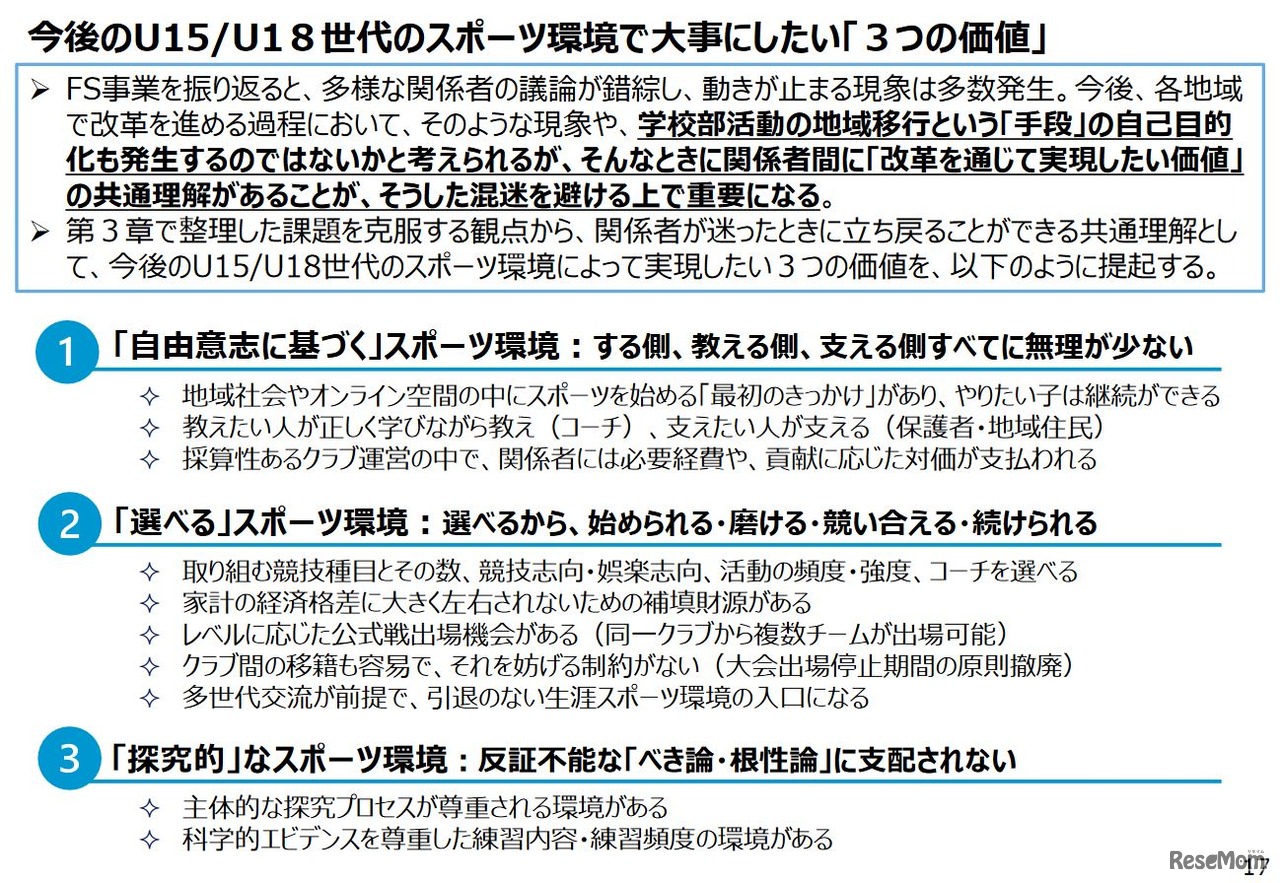 今後のU15/U18世代のスポーツ環境で大事にしたい「3つの価値」