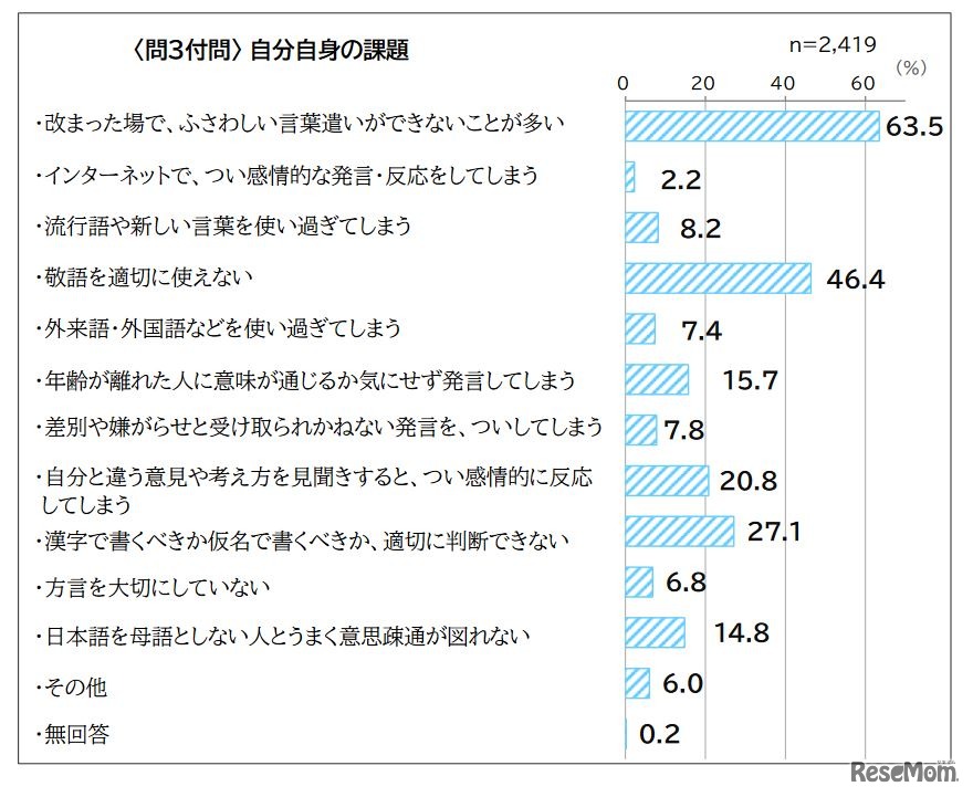 画像出典:文化庁「令和3年度『国語に関する世論調査』の結果の概要」 自分自身の課題