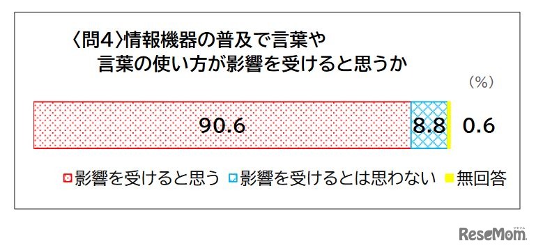 情報機器の普及で言葉や言葉の使い方が影響を受けると思う人が9割に達することが2022年9月30日、文化庁の2021年度国語に関する世論調査結果より明らかになった。新型コロナウイルスに関連した「おうち時間」や「黙食」は、そのまま使うのがいいと回答した人が6割を超えた。