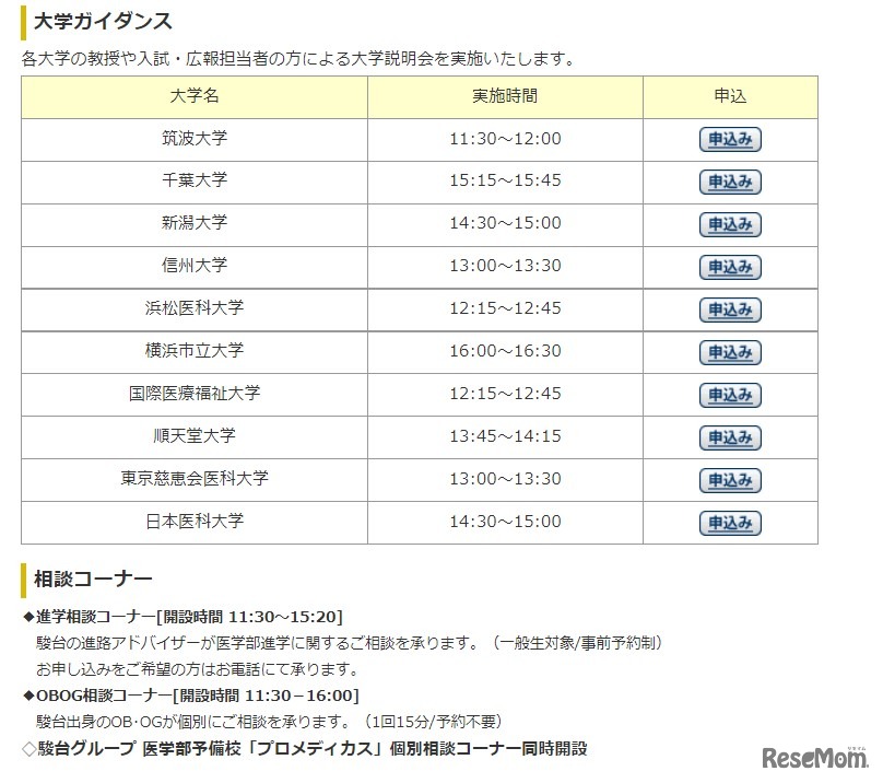 医学部受験生応援フェア第1弾 大学ガイダンス