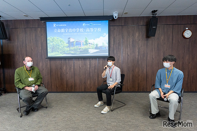 撮影:曳野若菜 2022年7月に東京で行われた立命館宇治高等学校IBコース説明会のようす。左から、IBコースのマシュー・トーマス先生、卒業生の杉本一陽さん、川岸大記さん
