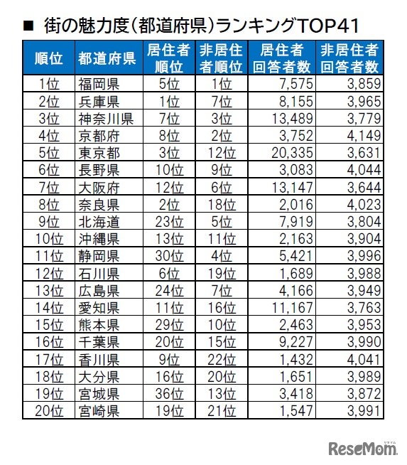 大東建託は2022年10月5日、過去最大級の居住満足度調査をもとにした第1回「いい部屋ネット 街の魅力度ランキング2022<都道府県版>」を発表した。居住者評価の1位は「兵庫県」、非居住者評価の1位は「福岡県」となり、総合1位は「福岡県」となった。