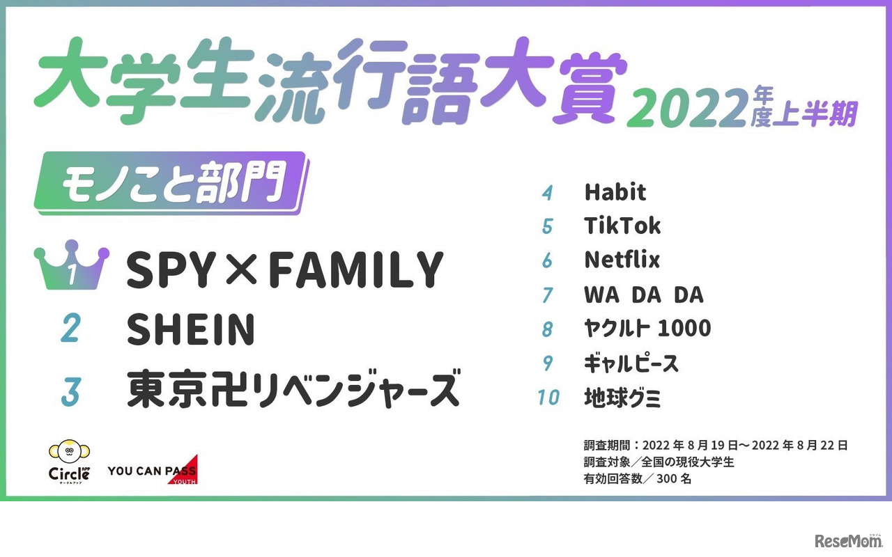 大学生流行語大賞2022年度上半期「モノこと部門」