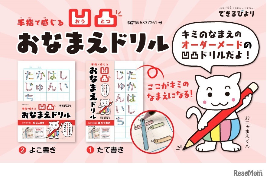 できるびよりは2022年10月1日より、名前練習専用オーダーメイドドリル「凹凸おなまえドリル」の受注を開始した。スマホから注文でき、約1週間で自宅のポストに届く。ドリルの文字の輪郭には凸凹加工があり、はみ出しに気づきながら練習でき、運筆力が育つ。