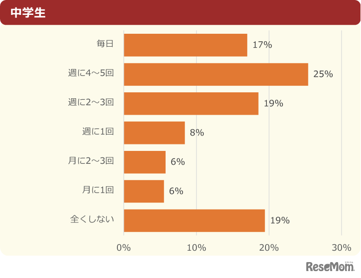 「体育の授業以外でどのくらいの頻度で運動する?」中学生