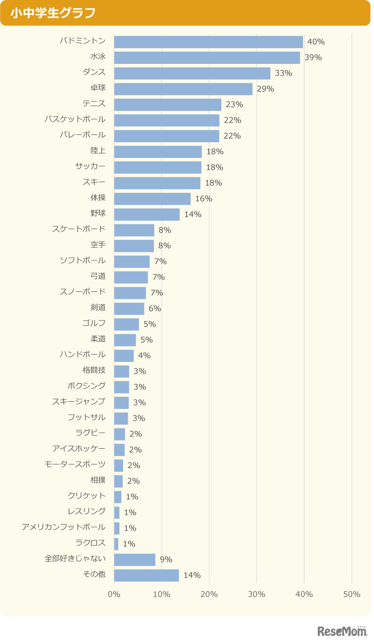 画像出典:ニフティ 「好きなスポーツはどれ?」小中学生