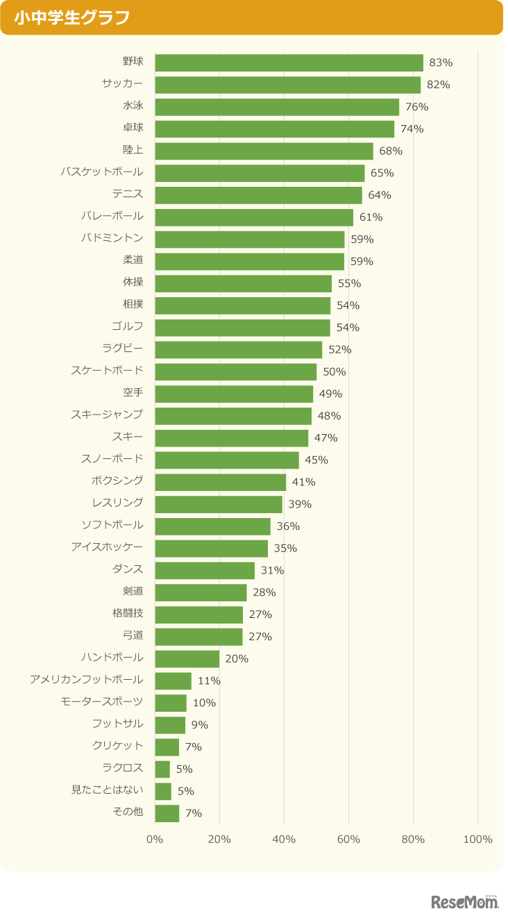 「テレビやネットで見たことがあるスポーツ競技は?」小中学生