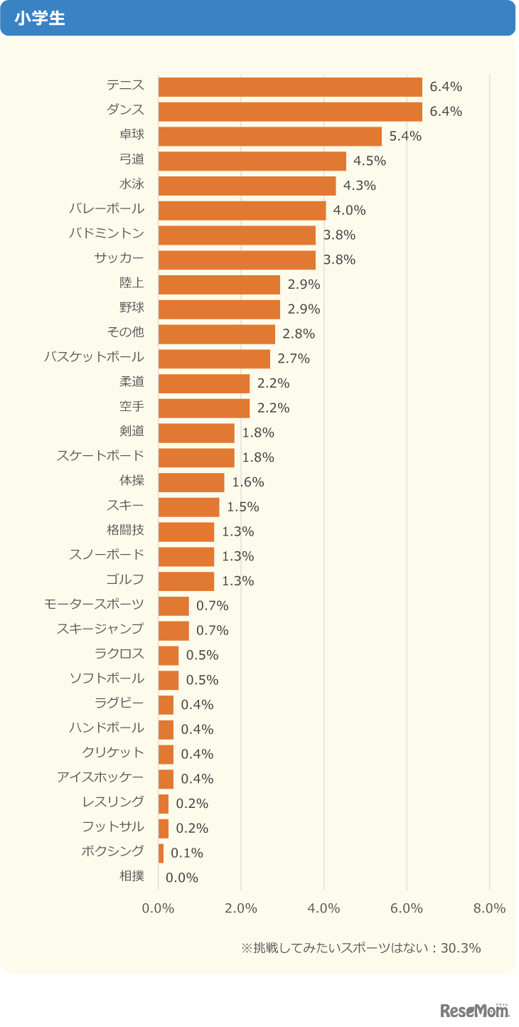 画像出典:ニフティ 「これから挑戦してみたいスポーツはある?」小学生